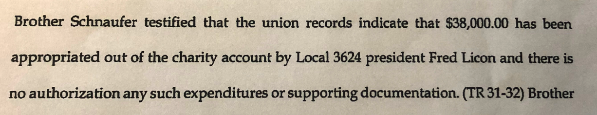 He also cited that fact that Licon took $6,000 in cash from the local’s regular account for himself and six other board members for the International Union Convention in Boston in 2018.