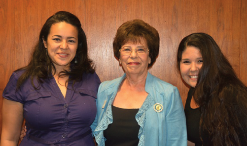 CERRITOS COLLEGE students Francisca Lezama Conde and Rachael Zuniga-De La Rosa were recognized for winning the “Live Your Dream” Scholarship from the Soroptimist International of Cerritos-Artesia at the Cerritos College Board of Trustees meeting