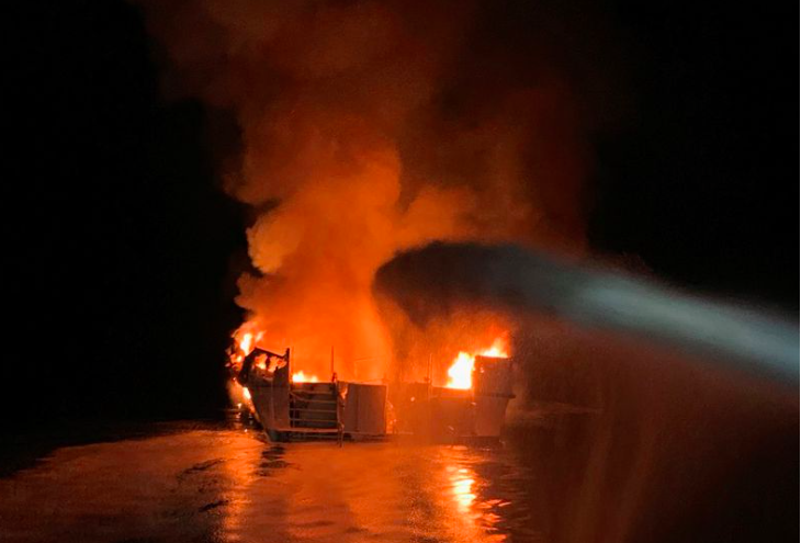 The Conception burst into flames around 3 a.m. Monday, with five crew members jumping into the water before they were saved by a passing pleasure vessel.