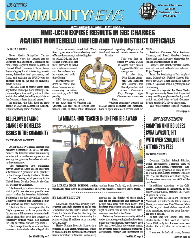 Greetings! Click on Fullscreen button below front page image to view our eNewspaper. Thanks for reading…. Southern California’s Community Newspaper.™