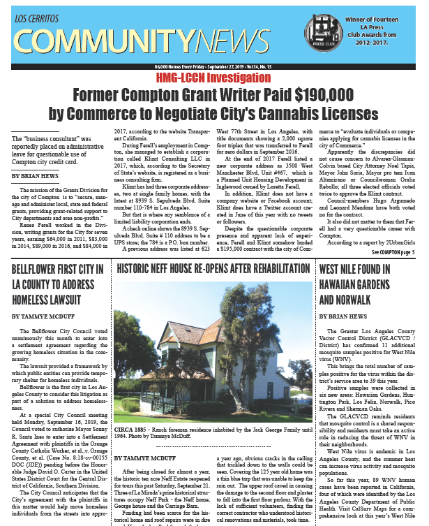 Greetings! Click on Fullscreen button below front page image to view our eNewspaper.. Thanks for reading…. Southern California’s Community Newspaper.™