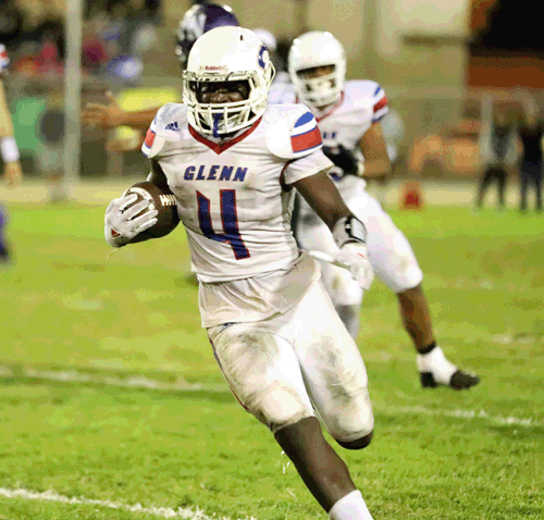 The game was scoreless until Glenn senior running back Edwin Udengwu scored from four yards out on the fifth play of the second quarter. Glenn went for the two-point conversion and was unsuccessful but was starting to gain some momentum.