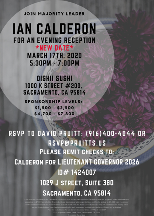 Hews Media Group-Los Cerritos Community News has received a flyer that indicates Assembly Majority Leader Ian Calderon, who said in November he was not running for re-election “to be closer to his family,” is eyeing a potential run for California Lieutenant Governor in 2026.