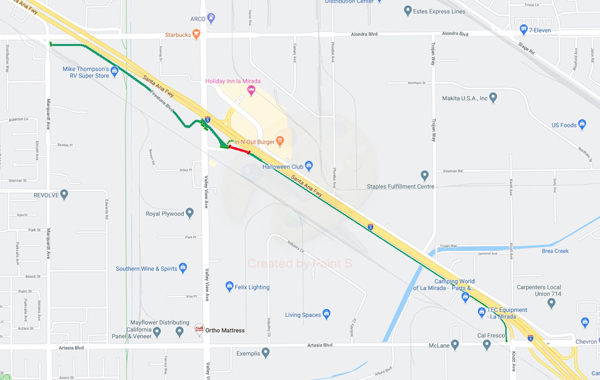 All driveways for the businesses between Artesia Blvd. and the on ramp to southbound I-5 will remain open, but they will only be accessible from Artesia Blvd.