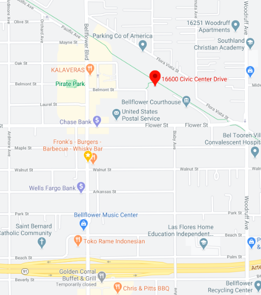 The testing site will be located at the parking structure of the Bellflower Civic Center located at 16600 Civic Center Drive, Bellflower, CA 90706. The site was developed through a joint effort between the Los Angeles County Fire Department, the Los Angeles County Department of Health Services, and the City of Bellflower.