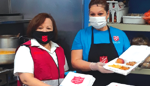 SALVATION ARMY BELLFLOWER Corps Envoy Belsy Martinez (l) with chef Norma Raco, who prepares 60 to 70 meals a day, 7 days a week for the homeless who come for assistance at the corps. Meals are also delivered to seniors and the disabled.
