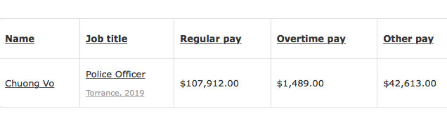 Transparent California screenshot shwoing Vo’s employment with the Torrance Police.