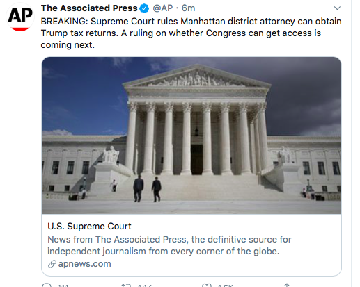 Supreme Court Says NYSD Can Obtain Trump Tax Returns