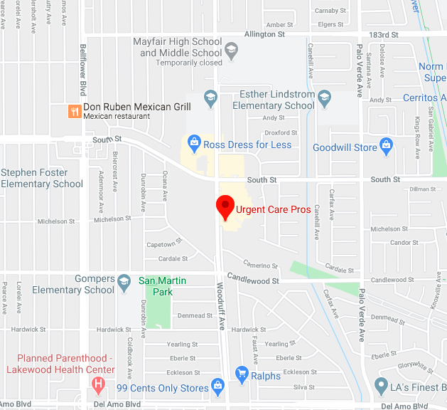 Urgent Care Pros is located at 5424 Woodruff Ave Lakewood, CA 90713 and is open daily from 9AM-5PM.