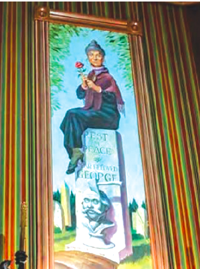 Original Haunted Mansion Stretching Portrait from the 1970’s Measures 144″ x 48″ and is in good condition overall. Hand-painted featuring the woman sitting on the tombstone of her husband George. The picture is expected to fetch between $80,000-$100,000.