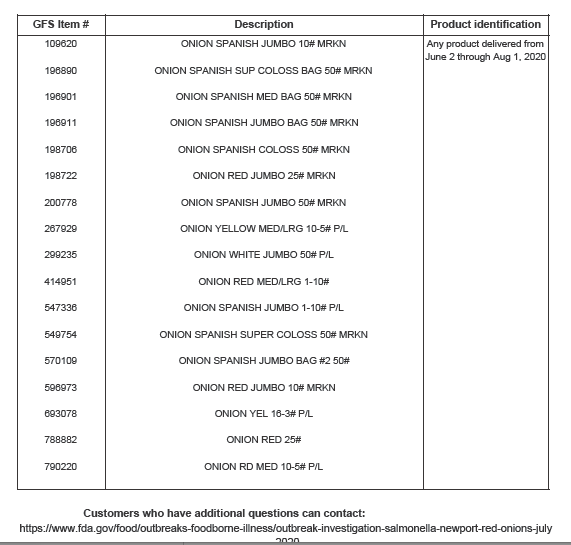Thomson International (through Markon Foods) has issued a recall for onions because they might be contaminated with Salmonella. They were delivered between June 2 and Aug. 1