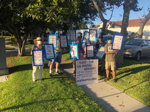 Since the President said he wants to give less money to the post office to hinder people from voting from their homes rather than standing in lines for hours during a pandemic, the Hubert Humphrey Democratic Club has been demonstrating in front of the Artesia and Cerritos post offices almost every Wednesday.