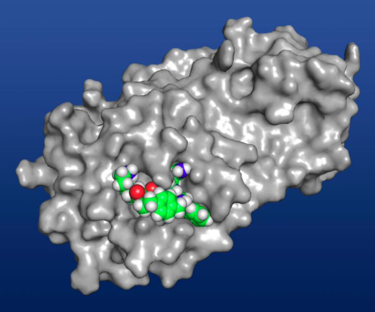 The new macrocycle, Kreutzer said, “sits there in the active site of the enzyme and makes it nonfunctional.”