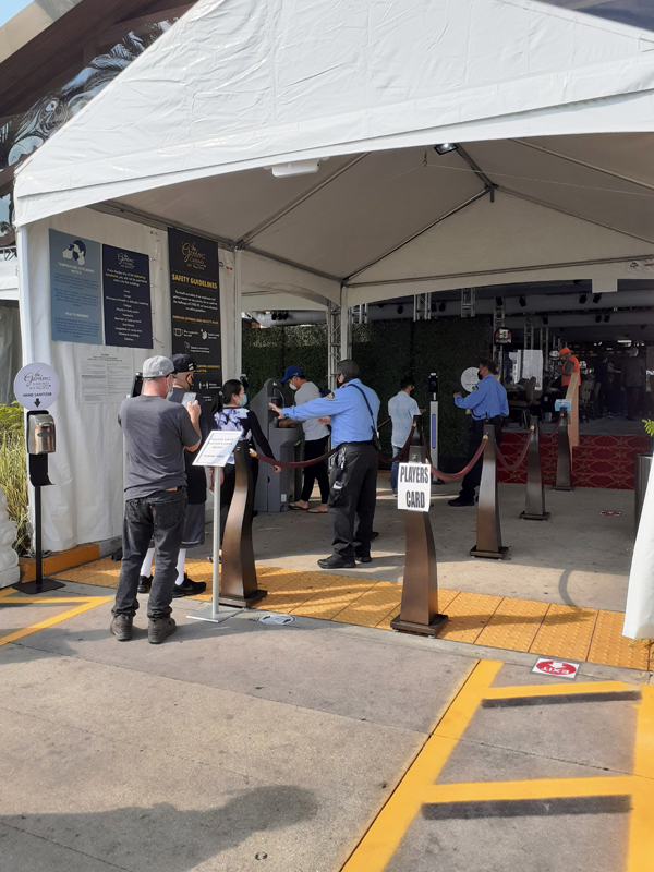 In order to follow all state and federal ordinances, the Gardens has transformed their former drive up valet area into an outdoor gaming room, rebuilding an outdoor casino from the sub-flooring, carpet, chairs, tables, equipment, tress work, security cameras, and even air conditioning. “We had to totally think outside the box. Basically everything that was indoors is now outdoors,” said Sharp.