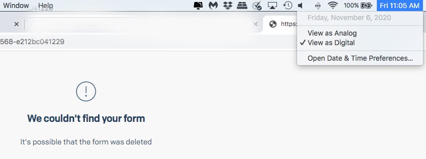The error page on Fowler’s site dated Nov. 6, 2020. Fowler has since fixed the page.