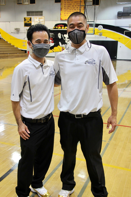Jonathan Watanabe (left) and Kevin Enomoto coached their last Cerritos High game together on May 28, a 66-52 loss to Orange Lutheran High in the CIF-Southern Section Division 2AA first round playoffs. While Watanabe is retiring after 20 seasons as the school’s head coach, he and Enomoto were co-head coaches the past six seasons, going 102-59 with three straight 605 League championships.