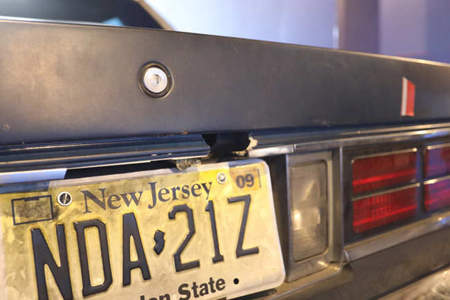 A close-up of a vehicle’s trunk with “beltway sniper” hole in rear (above the license plate) shows where alleged sought after criminals would stick their rifles out to fire shots.