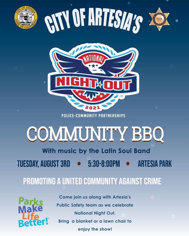Artesia’s National Night Out Tues Aug. 3, 2021 at Artesia Park