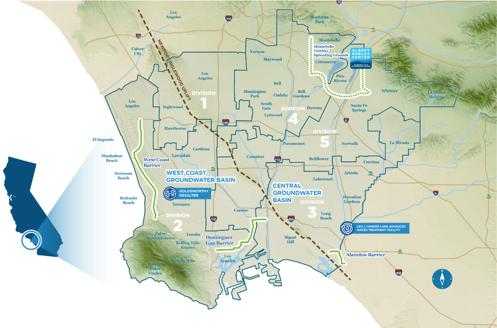 The Water Replenishment District’s service area includes 43 cities in Southern Los Angeles County.