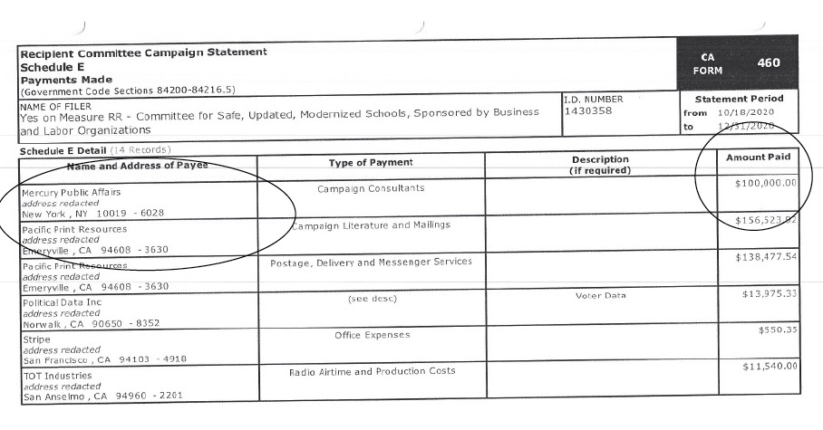 Accountants, architects, contractors, designers, engineers, inspectors, labor unions, material suppliers, and lawyers – the Megataxers – begin donating months in advance of the bond’s appearance on the ballot.