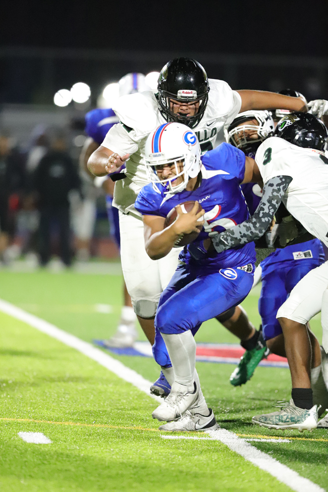 Glenn was looking to add to its lead early in the third quarter, but when senior Jimmy Torres punted, Cabrillo’s Devin Edwards took it 60 yards to the house and three minutes into the half, it was 14-6 as the extra point attempt was blocked. While the Eagles still struggled on offense, the defense picked it up even more as the Jags had five offensive plays in the third quarter and 11 in the fourth quarter, including the three interceptions.