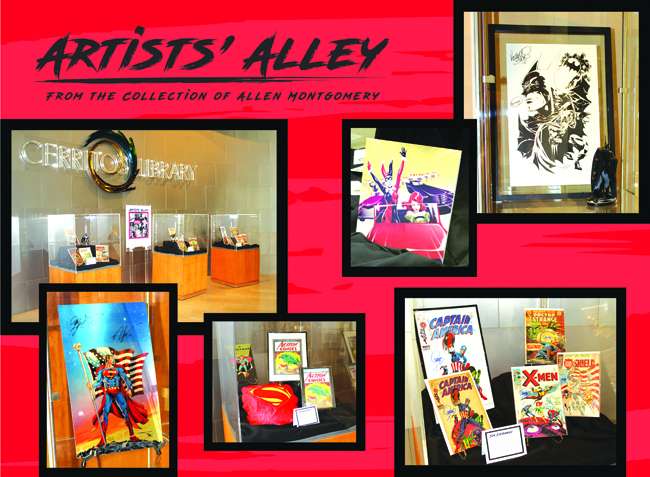 The Cerritos Library is now presenting an exhibition of comic book artwork by some of the most influential and groundbreaking artists in history. The exhibition, “Artists’ Alley,” is on display until Sunday, October 31 throughout the first floor of the library, including Main Street, the Children’s Library, Local History Room and Multimedia Area.The exhibition includes “Bat Man,” “Black Panther,” “Justice League America,” “Superman,” “Dr. Strange” and “X-Men” comic books, posters and action figures. Featured artists include Amanda Conner, Carmine Infantino, Dan Jurgens, Bob Kane, Jack Kirby, Adam Kubert, Andy Kubert, Joe Kubert, Win Mortimer, Dick Sprang, Joe Shuster, Brian Stelfreeze, Jim Steranko and Mico Suayan. The exhibition was organized by Allen Montgomery and features many pieces from his collection. Cerritos Library is located at 18025 Bloomfield Avenue, Cerritos. The library is open 11 a.m. to 7 p.m., Monday through Friday; 1 to 5 p.m. on Saturday; and 1 to 5 p.m. on Sunday.