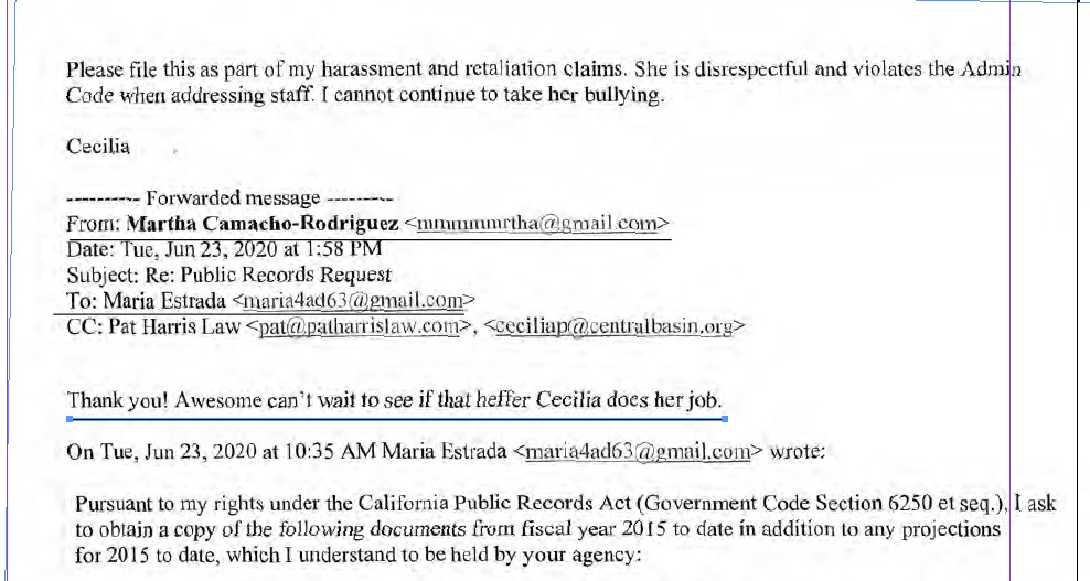 Hews Media Group-Cerritos News has obtained, via a public records request, disturbing emails between long-time CB staff, Vasquez-Wilson and Camacho-Rodriguez, documenting a shocking pattern of harassment so harsh that employees feared for their safety and endured constant threats and intimidation.