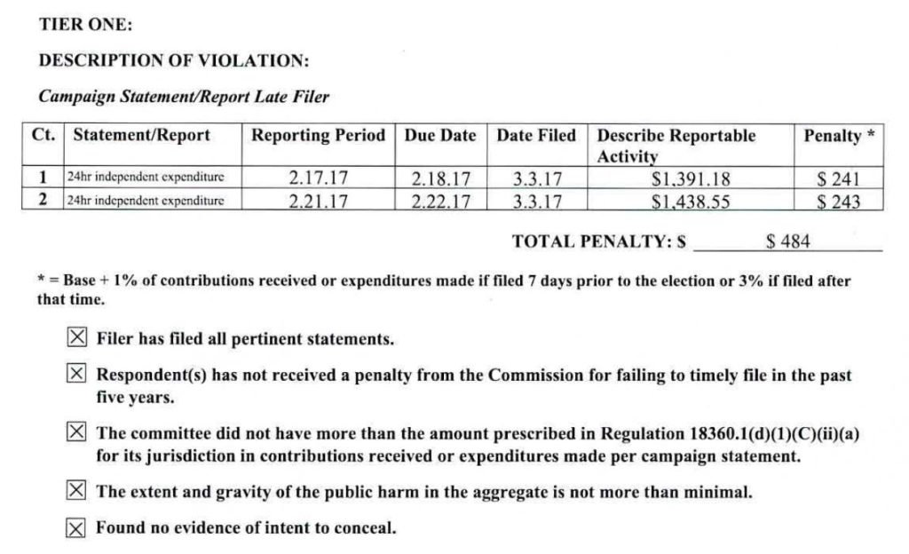A complaint was filed and sent to the FPPC, triggering the investigation and fining RBLM and Onufrie a measly $458.