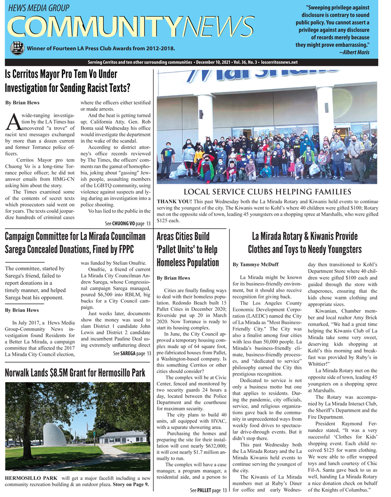 Hyper local award winning weekly community newspaper group: Cerritos news, Artesia news, Hawaiian Gardens news, Norwalk news, Lakewood news, La Mirada news, Pico Rivera news, La Palma news, Commerce news, Bellflower news, Montebello news, Whittier news