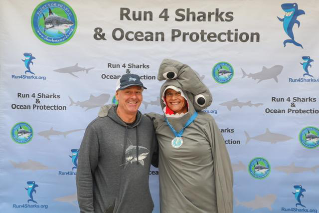 Pictured is guest speaker Maria Korcsmaros (r), Southern California Shark Stewards Chair and Race Director for Run4Sharks & Ocean Health Fair, at one of her past runs at Newport Beach.