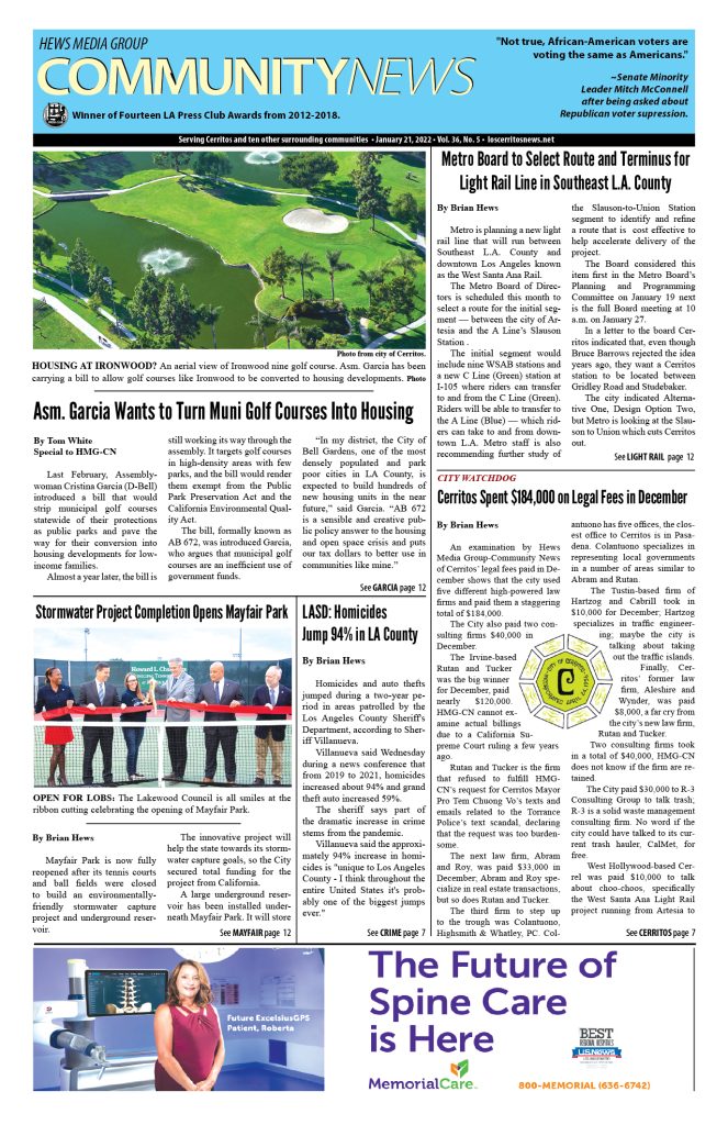 Hyper local award winning weekly community newspaper group: Cerritos news, Artesia news, Hawaiian Gardens news, Norwalk news, Lakewood news, La Mirada news, Pico Rivera news, La Palma news, Commerce news, Bellflower news, Montebello news, Whittier news