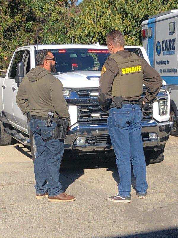 Pictures sent in by residents show Sheriff’s inspecting the front and inside of the truck. Firefighters believe that the LASD is investigating the use of this city vehicle by Peel to impersonate a police officer.