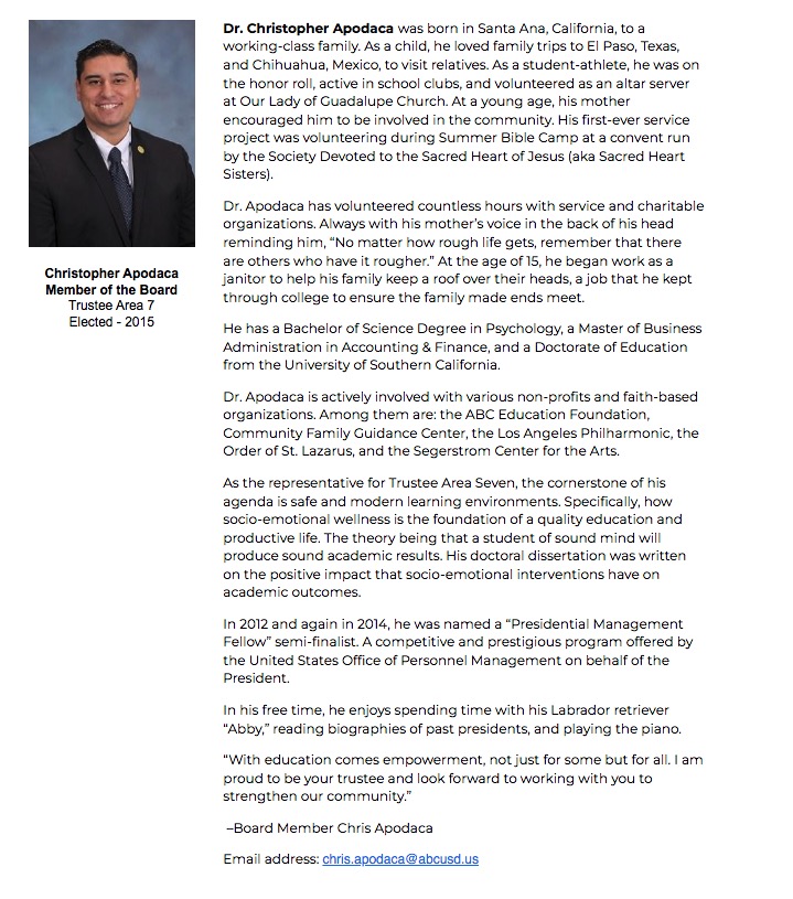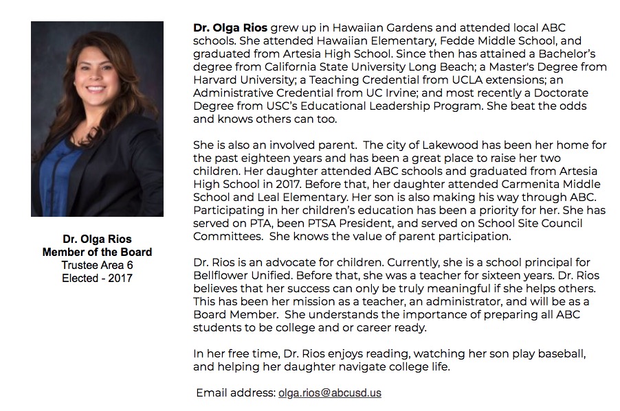 “Please note that board members Dr. Olga Rios and Dr. Chris Apodaca have been very supportive and continue to fight for ABC employees in public and behind the scenes.