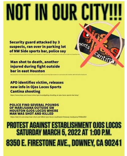 There have been multiple concerns over Ojos clientele and resident safety. According to Downey Police Department, other locations have been plagued with criminal activity, including shootings, stabbings, and problems with outlaw motorcycle gangs.
