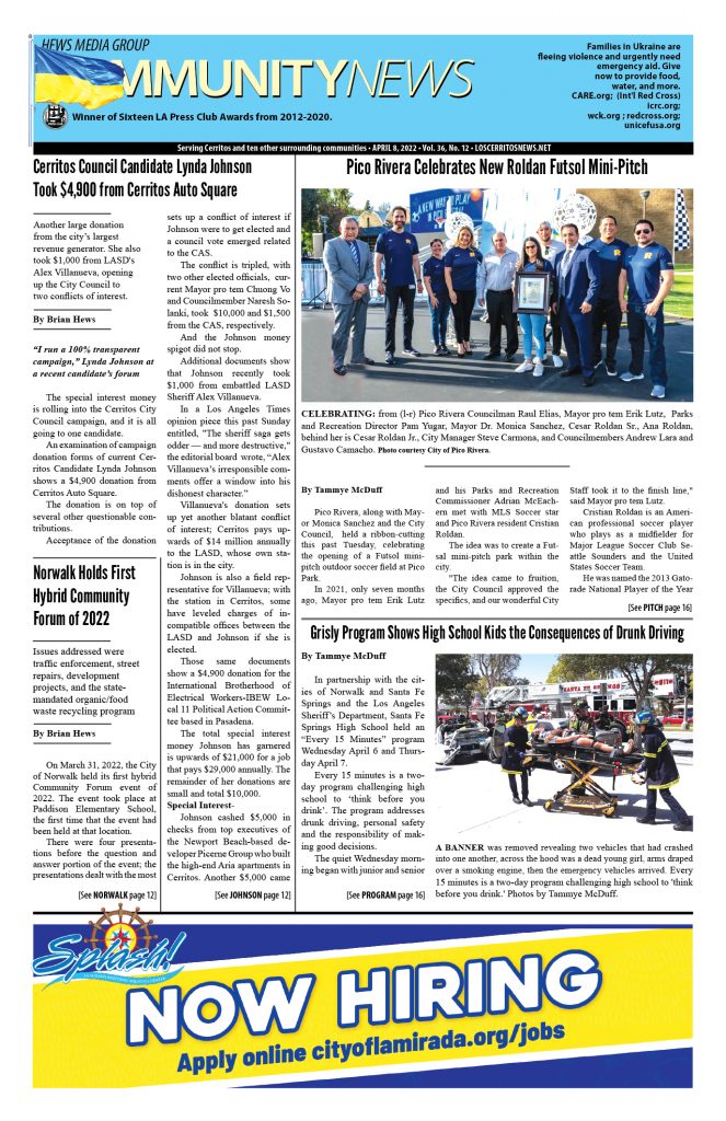 Award-winning HMG-CN is a hyper -local community news and investigative reporting print newspaper in Los Angeles and Orange Counties. Covering Cerritos, Artesia, Hawaiian Gardens, Lakewood, Norwalk, La Mirada Lamplighter Community Newspaper, La Palma, Commerce, Downey, Bellflower, Pico Rivera.