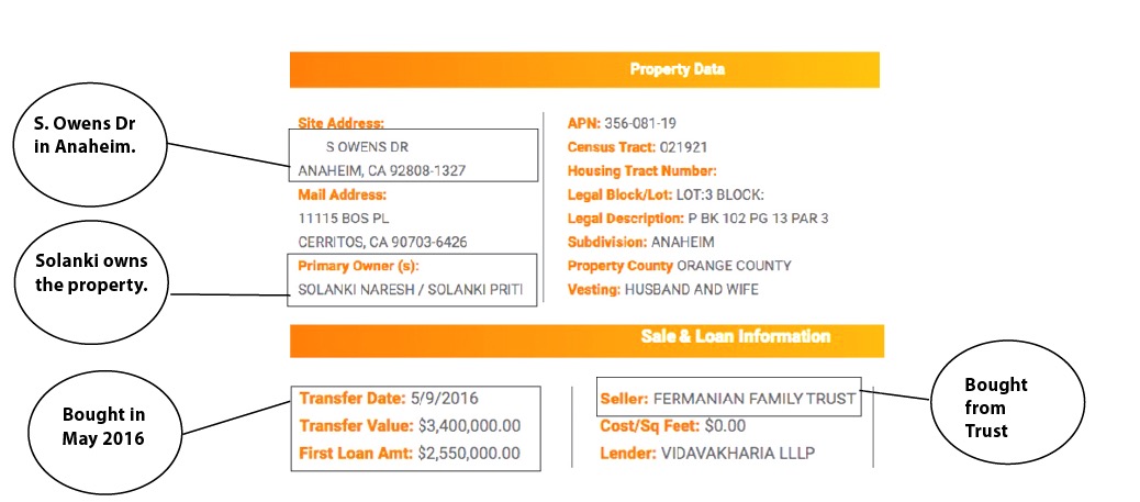 Online title documents show that Solanki bought the Anaheim mansion for $3.4 million in May 2016, immediately after he was sworn in as a City Council member.