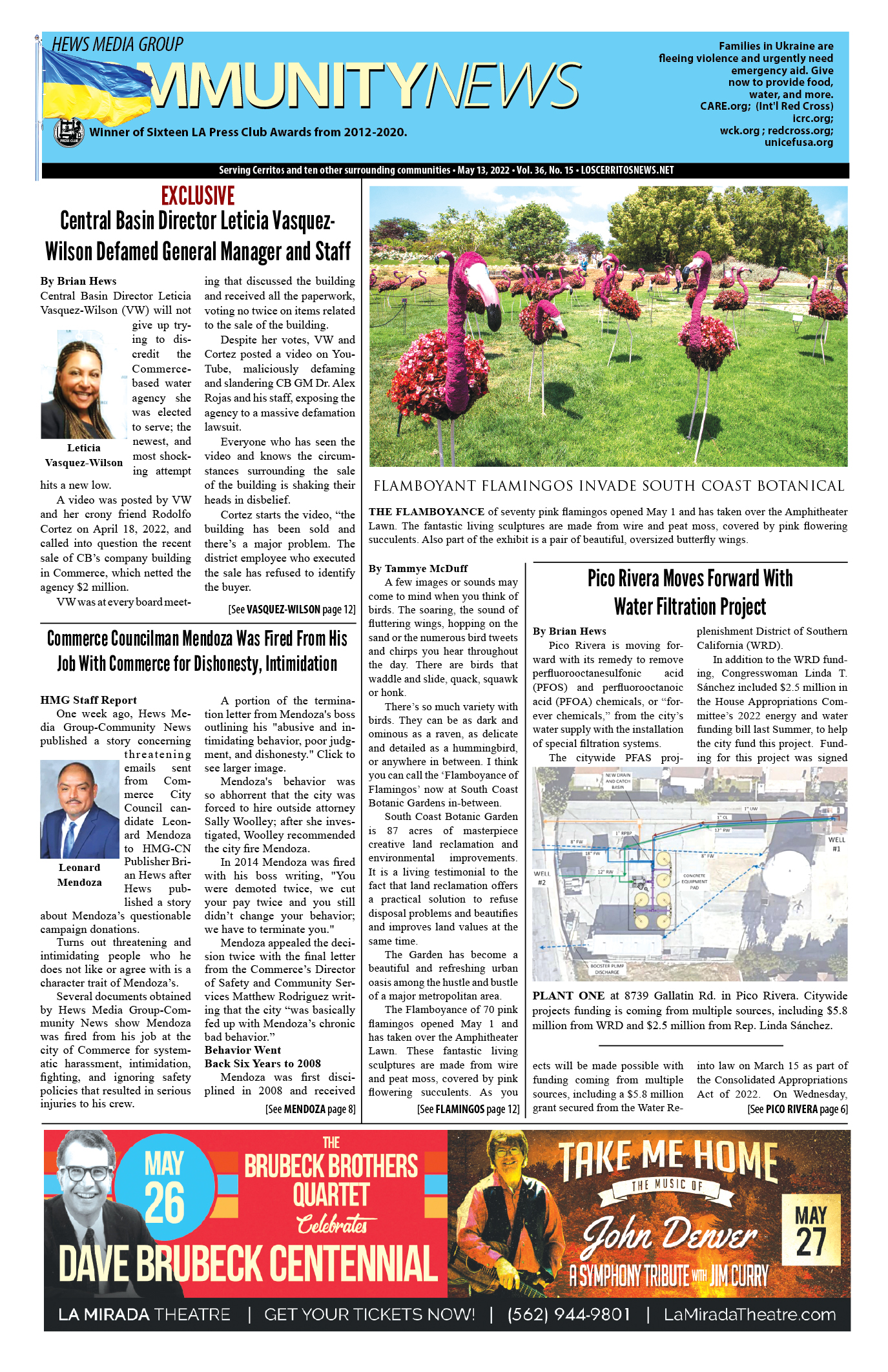 Award-winning HMG-CN is a  hyper -local community news and investigative reporting print newspaper in Los Angeles and Orange Counties.  Covering Cerritos, Artesia, Hawaiian Gardens, Lakewood, Norwalk, La Mirada Lamplighter Community Newspaper, La Palma, Commerce, Downey, Bellflower, Pico Rivera.