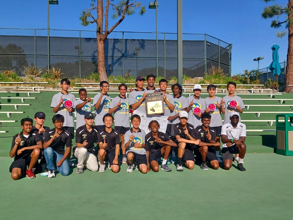 The Cerritos High boys tennis team won the program’s third CIF-Southern Section championship in four attempts, this time edging Nordhoff High 10-8 last Friday in the Division 4 finals. The Dons previously won the 2008 and 2009 championships after losing in the 2007 title match. PHOTO BY LOREN KOPFF.