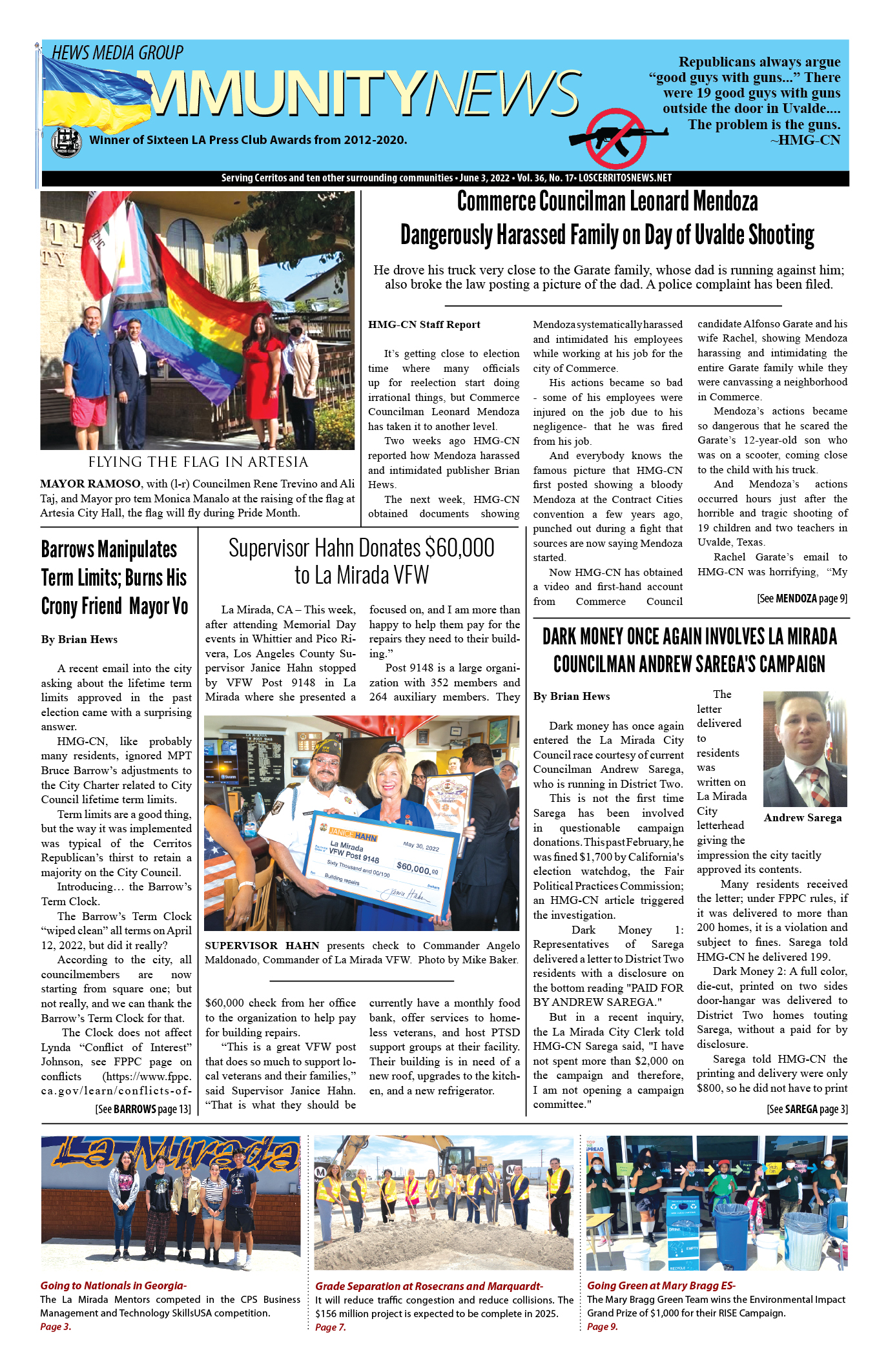 Award-winning HMG-CN is a hyper -local community news and investigative reporting print newspaper in Los Angeles and Orange Counties. Covering Cerritos, Artesia, Hawaiian Gardens, Lakewood, Norwalk, La Mirada Lamplighter Community Newspaper, La Palma, Commerce, Downey, Bellflower, Pico Rivera.