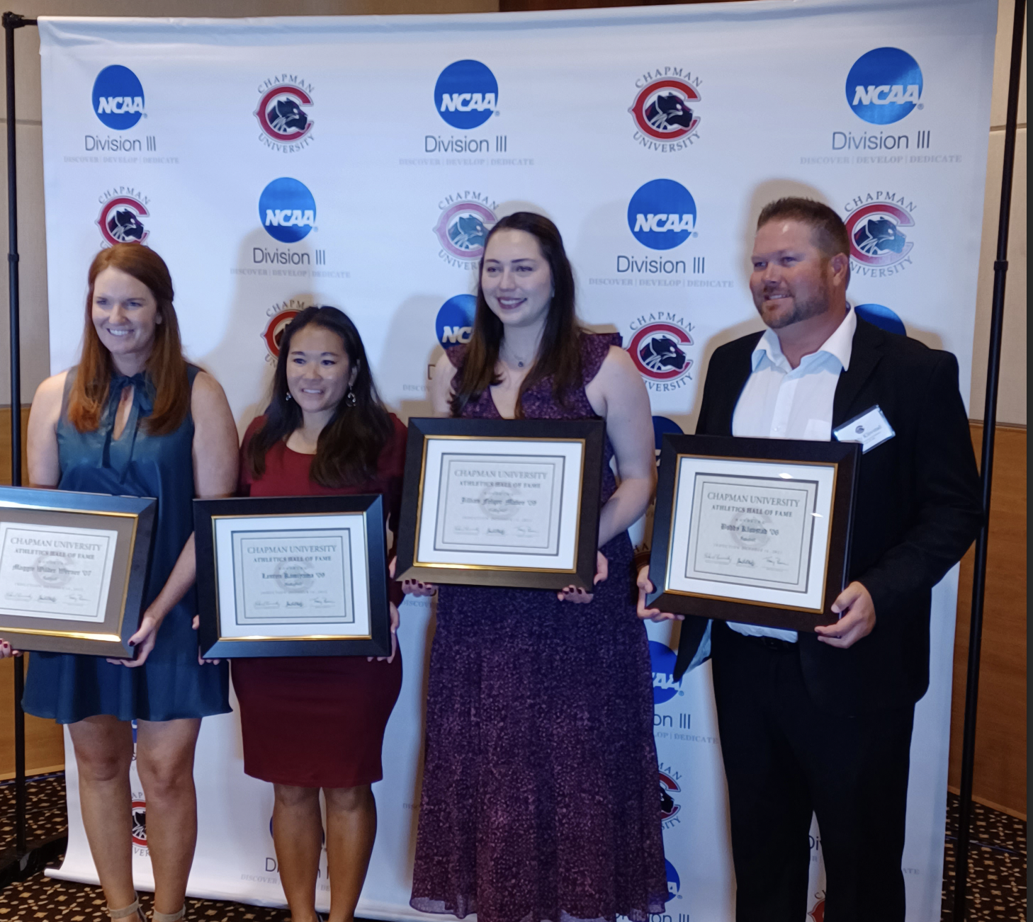 She does now, herself, and she knows it’s a big deal as last Friday night, Kamiyama was one of four athletes inducted into Chapman’s 39th Night of Champions and Athletics Hall of Fame. The former basketball star, who graduated in 2009, joins Buddy Klovstad (baseball, 2006), Maggie Wilder Werner (softball, 2007) and Jillian Felger-Mabee (volleyball, 2009). She went as far as saying she’s humbled because her teammates should all be honored alongside her.