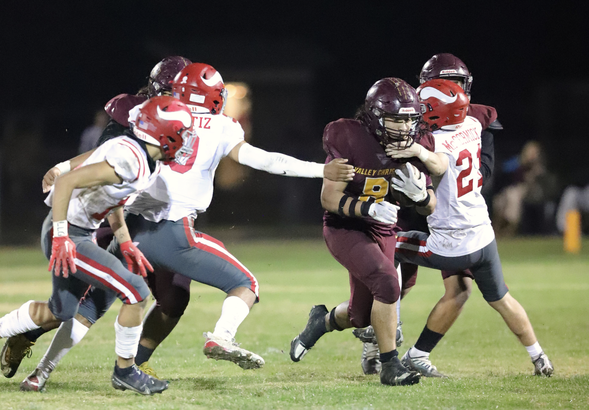 Despite the three miscues by the Vikings and the three punts and missed field goal by V.C., both teams were moving the ball well in the half. Sanchez completed nine of 16 passes for 161 yards, all but 39 yards going to Robert Barrera, and Aiden Avila accounted for 16 of the 18 rushes by Hueneme in the first half while Apisala was already at 80 yards on 15 carries as both teams easily had over 170 yards in offense.