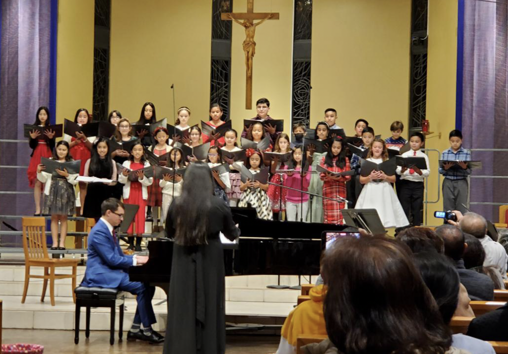 The St. Irenaeus Parish Choir directed by Anthony Kocal, Tung Do at the piano.