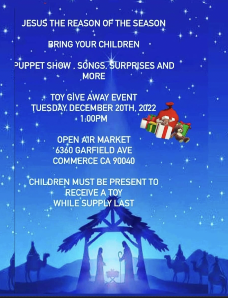 Commerce-based Fenix USA Merchandise will be holding a Christmas Show and Toy Giveaway starting at 1:00 pm December 20, 2022 at its open-air market located at 6330 Garfield Ave. in Commerce.