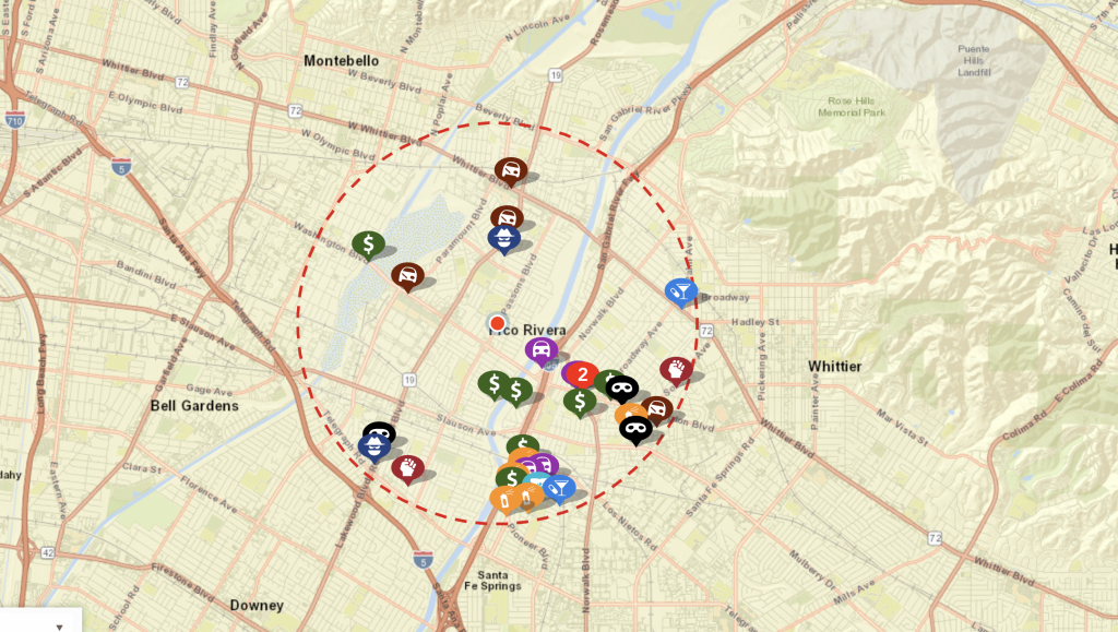 A list of the crimes is below the map. Click on map to view interactively and zoom in/out of map.