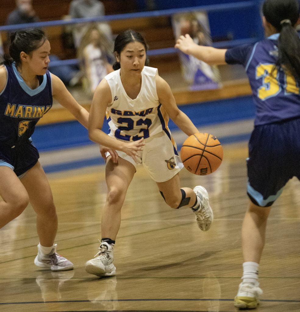 Marina would own the third quarter, outscoring Gahr 14-8 as the lead changed hand five times, the last coming on a three-pointer from Rylee Bradley with 2:43 remaining in the stanza. On Gahr’s ensuing trip down the court, Maria Tejeda had a steal and scored and when Bradley began the fourth quarter with a basket, the Vikings were up by five points for the second time in the game. That lead would balloon to eight points when Sydnie Smith scored her only points of the game with 4:38 remaining. After that, it was all Gahr, and Teramoto, who found her groove again. She scored consecutive baskets to make it 37-33.