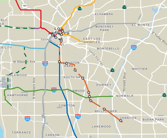 The light rail line from Artesia to Downtown Los Angeles.