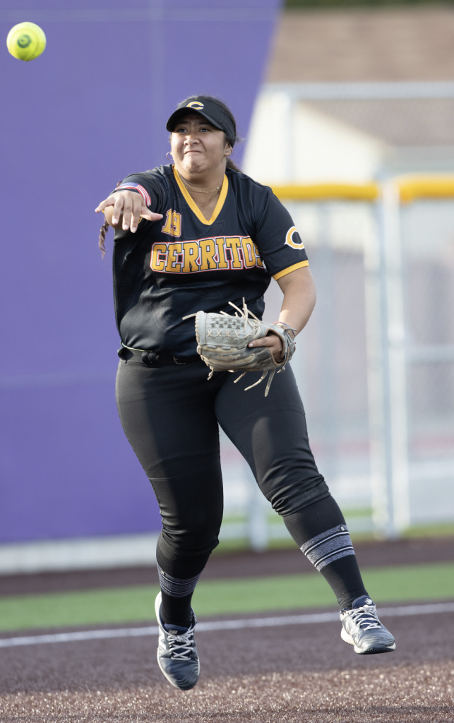 That meant Baca got the starting gig against the Lancers and after a rocky start, settled down and didn’t allow a runner to get to second base until the bottom of the eighth. The top of the ninth inning began with junior pitcher Kendall Nakano walking senior center fielder Camille Lara, who would steal second. A base hit from junior first baseman Natalie Gardea plated Lara and that was followed by a single from sophomore catcher Alianna Calderon. Both would steal their respective bases and Cerritos increased its lead following a base hit from sophomore shortstop Katherine Villegas. Two batters later, a groundout from Baca concluded the scoring with Calderon touching home plate.
