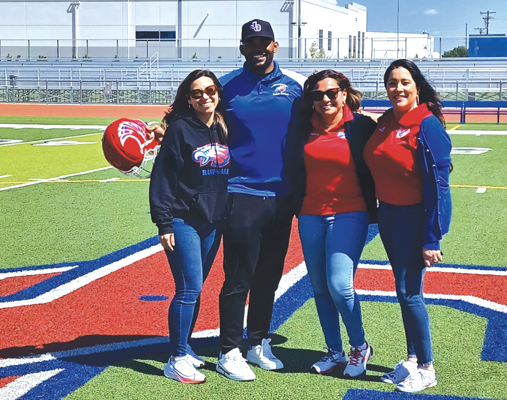 LOOKING TO THE FUTURE: From left to right: John Glenn High co-athletic director Linda Parra, varsity head football coach Elijhaa Penny, assistant principal Paulette Gasporra and principal Dr. Jennifer Padilla. PHOTO BY ARMANDO VARGAS, Contributing photographer.