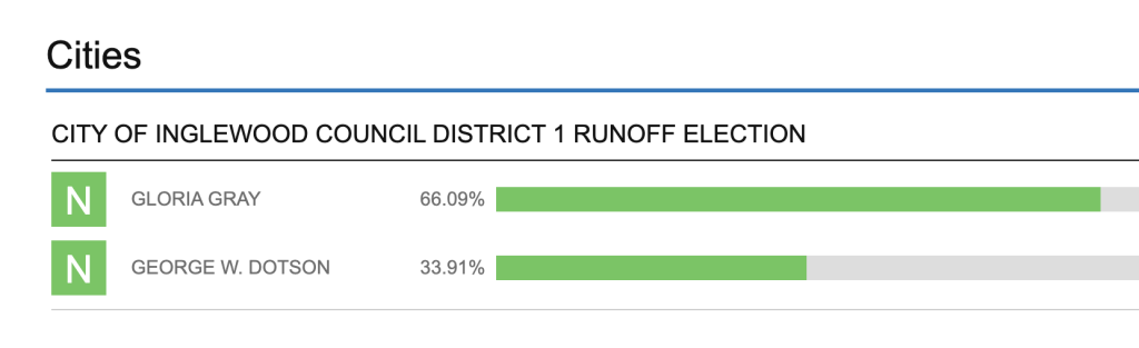 Just a few weeks ago, even though Ms. Gray serves on West Basin District II, a district Inglewood is a part of, and the fact she serves on the Water Policy and Legislation committee lobbying lawmakers in the name of West Basin, Ms. Gray ran for and won a city council seat in Inglewood.