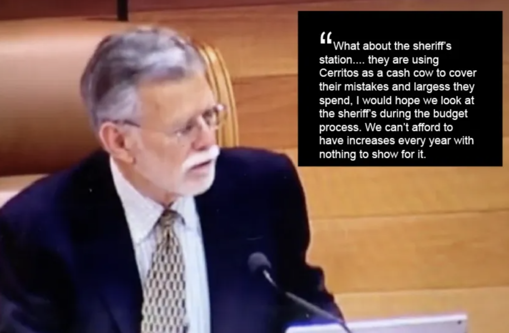 “The sheriffs are using Cerritos as a cash cow to cover their mistakes and largess they spend. I would hope we look at the Sheriff’s during the budget process.”